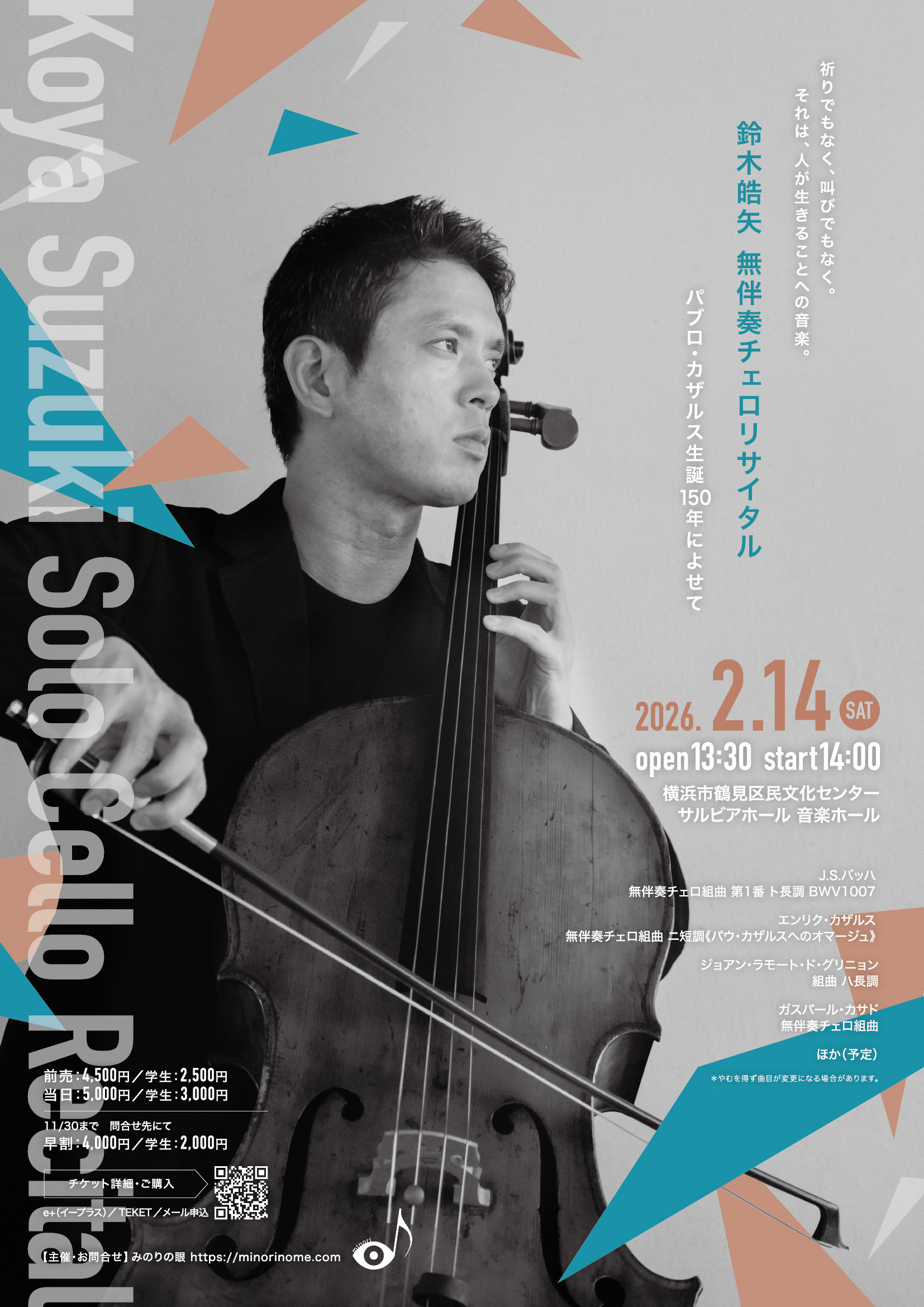 鈴木皓矢 無伴奏チェロリサイタル パブロ・カザルス生誕150年に寄せて